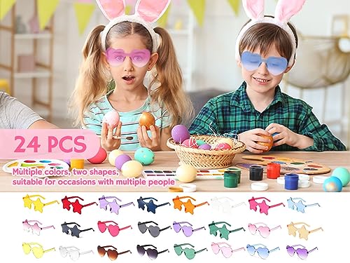 Kellegour 24 pezzi Occhiali da Sole a Cuore,Occhiali a Forma Stella,Occhiali da Sole a Forma di Stella,Occhiali Trasparenti Color Caramella,per Festa Party,Carnevale,Festival Musicali,24 Colori