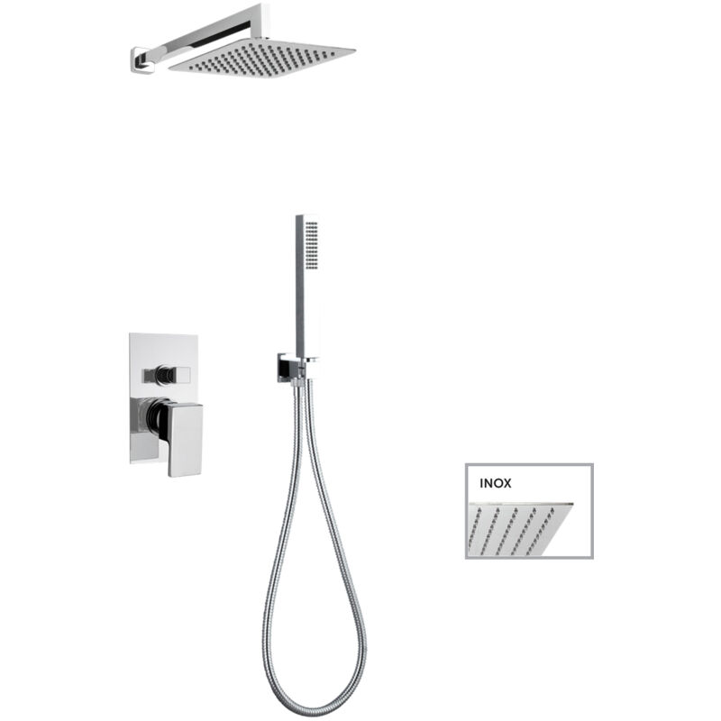 KIT SOFFIONE QUADRATO Acciaio mm 200x200 CON MISCELATORE INCASSO DOCCIA,DEVIATORE A 2 USCITE + KIT DOCCIA QUADRATO CON PRESA ACQUA, FLESSIBILE cm 150 E DOCCETTA QUADRATA ABS. FINITURA CROMATA - 14019/20 I rubinetti per il bagno Keller Taps si riconoscono per design unico ed elegante. Tipo: Colonna doccia Finitura: Cromo Materiale: ABS Utilizzo: Doccia Brand: Keller Taps Miscelatore: Monocomando Installazione: Incasso Deviatore: A due uscite
