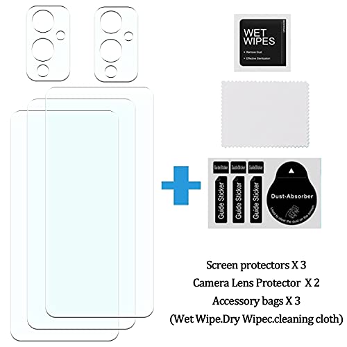 【La confezione include】 Nella confezione sono presenti 3 protezioni per lo schermo + 2 protezioni per obiettivo della fotocamera e 3 borse per accessori e ogni borsa per accessori include 1 salvietta umida, 1 salvietta a secco, 1 panno per la pulizia.