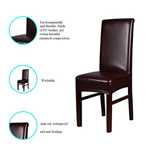 KELUINA Elastico Spandex pu coprisedie in Pelle per Sala da Pranzo, Impermeabile e Resistente a Olio Stretch Protector Copertura per Hotel e Decorazione di Famiglia (Caffè1,6 Pack)