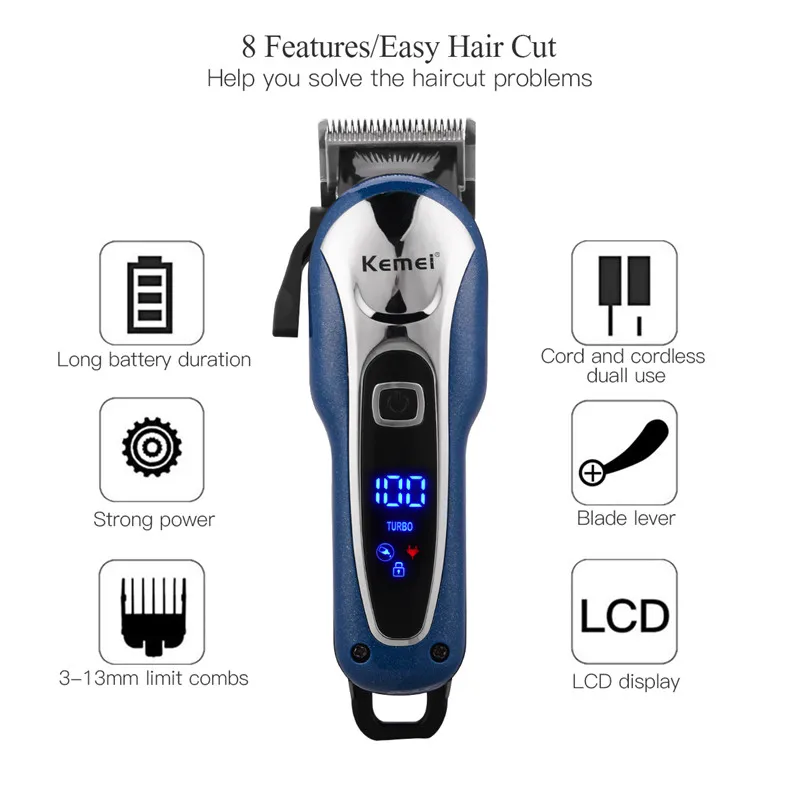 Kemei KM-1995 Professional Hair Clipper Men Cordless Hair Trimmer Stainless Steel Cutter Blade LCD Display Hair Cutting Machine
