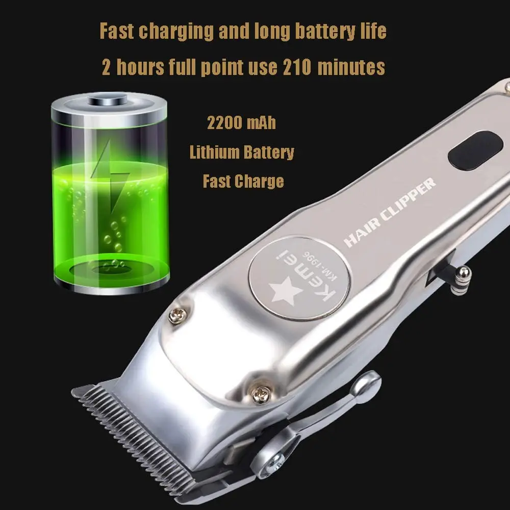 Kemei KM-1996 All-metal Professional Hair Clipper Electric Cordless Hair Trimmer for Men Hair Cutter Hair Cutting Machine Barber