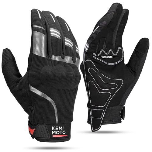 KEMIMOTO Guanti Moto Uomo, Guanti Moto Estivi con Protezione Caviglia, Guanti Moto Touch Screen, Guanti Moto Omologati per Moto, Ciclismo, Campeggio, Outdoor e Attività Sportive