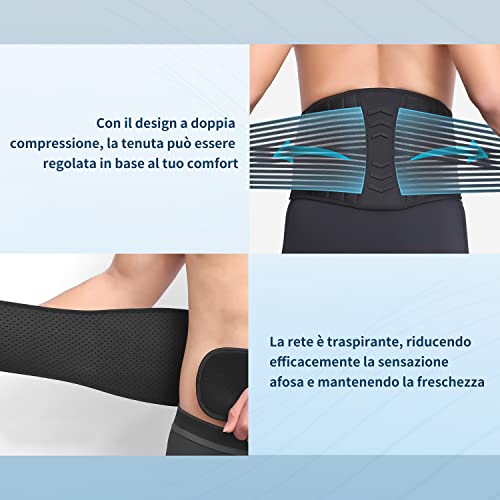 【Allevia il dolore e proteggi la parte bassa della schiena】 Fascia Lombare Supporto Schiena può alleviare efficacemente problemi alla schiena come ernia del disco, sciatica, scoliosi, lombalgia, la cintura di supporto offre un eccellente supporto confortevole, aiuta la stabilità della colonna vertebrale e riduce le vibrazioni del movimento e fornisce protezione efficace in qualsiasi attività, permettendoti di goderti la vita e lo sport in modo facile e felice
