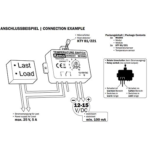 Kemo M169A - Interruttore di temperatura 12 V/DC 0-100 °C