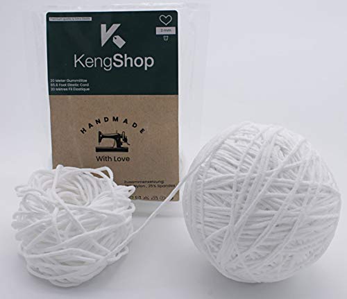 KengShop, cordino in gomma elastico da 3 mm, rotondo, bianco, 25 m
