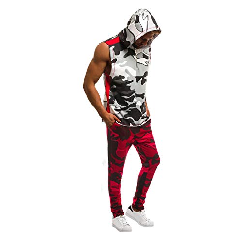 Kenmeko Completi Sportivi da Uomo Abbigliamento Sportivo Completo Tuta Jogger Camo Slim Fit Felpe Pantaloni Tuta (XXL,Grigio)