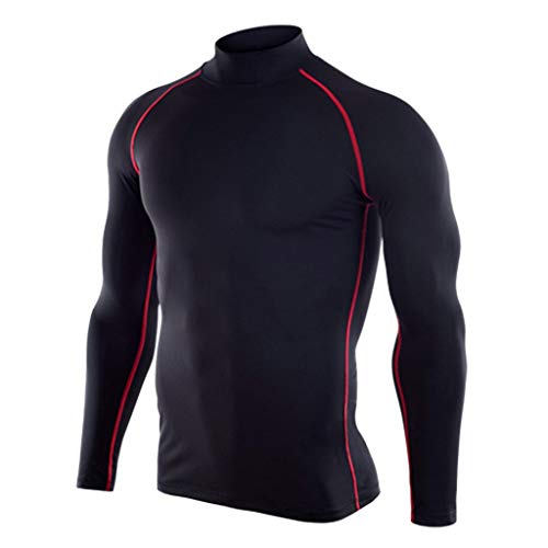 Kenmeko Uomo Compressione Livello Base Manica Corta Maglietta Bodybuilding Top Poliestere e Spandex (M,Rosso)