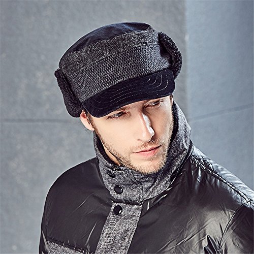 Kenmont coppola invernale da uomo, con motivo a spina di pesce con paraorecchie lana caldi in pile con visiera cappello da baseball