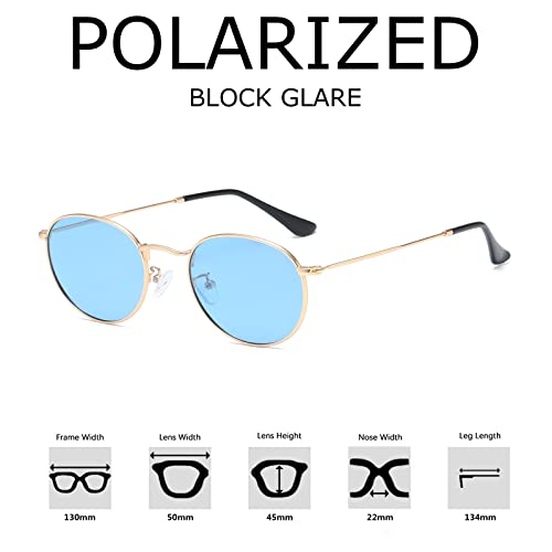 Kennifer Occhiali da sole rotondi unisex, polarizzati UV400, protezione cerchio retrò Steampunk occhiali da sole per uomini e donne, Mare bkue, Medium