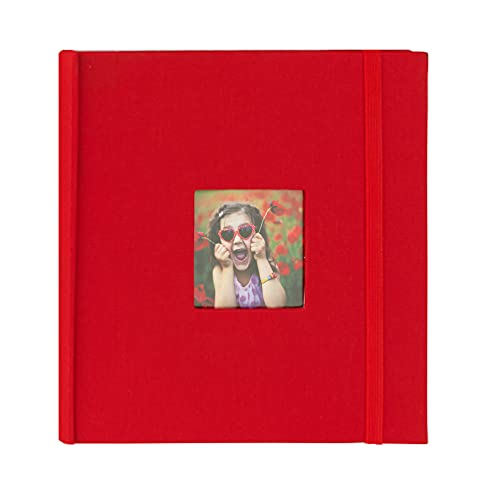 Questo album è in un contemporaneo rosso con una bella finitura lino e una cornice sulla copertina anteriore per una foto preferita
