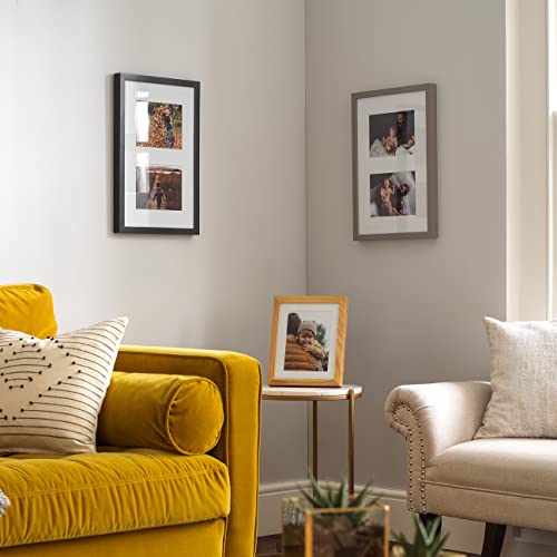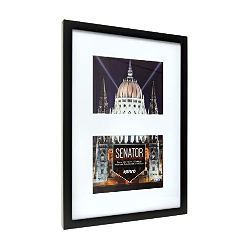 Kenro SNF1520B/2 - Cornice doppia in legno nero, 30 x 45 cm, con tappetino bianco, per 2 foto da 15 x 20 cm, colore: Nero