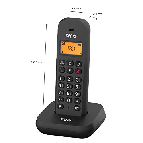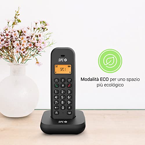 SPC Keops - Telefono Cordless con Display Retroilluminato 35x30 mm | ID Chiamante | Rubrica 50 Contatti | Modalità ECO | Compatibilità GAP | Design Compatto e Leggero, Nero