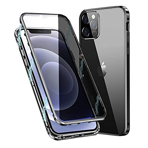 Kepos Cover per iPhone 12 Pro,360 Gradi Antiurto, Adsorption Magnetique Housse,Anteriore e Posteriore Trasparente Vetro Temperato Metallo Frame Cover Case, Nero