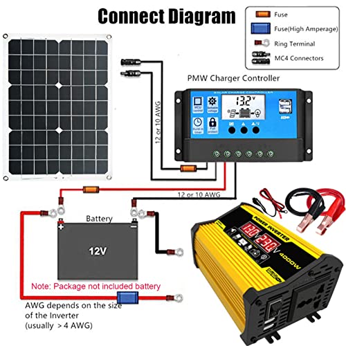 ♁[Protezione multipla] Il kit completo di energia solare è progettato per essere sicuro da usare, dotato di una luce di lavoro a LED che mostra una luce verde quando funziona normalmente, emettendo una luce LED rossa quando è sotto tensione, alta tensione, sovratemperatura o sovraccarico.