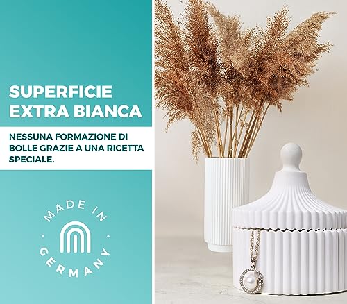 Sii creativo: la polvere bianca può essere utilizzata in modo estremamente creativo. Dopo la completa asciugatura, gli oggetti possono essere levigati, dipinti, timbrati o decorati in altro modo