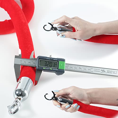 Contenuto della confezione: riceverete 1 nastro di sbarramento in velluto con moschettone di colore rosso per il montaggio individuale con due moschettoni dorati con una lunghezza totale di 150 cm in una qualità molto massiccia e pregiata, Ø 3,2 cm