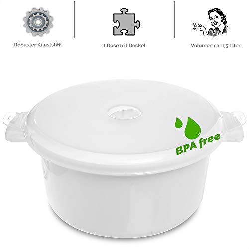 ✅ La confezione include questa scatola con coperchio. 1 pentola per microonde della nostra linea Kerafactum con coperchio con pratiche maniglie. Volume totale della ciotola: circa 1,5 litri. Materiale utilizzato: plastica senza BPA, colore: avorio con coperchio latte.