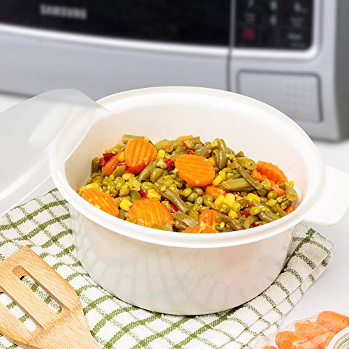 Kerafactum Imbracatura per forno a microonde con coperchio, piatto termico rotondo per microonde, ciotola con coperchio ermetico, contenitore per microonde con coperchio