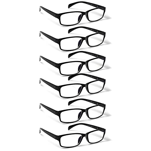 Kerecsen Confezione da 6 occhiali da lettura alla moda, per donne e uomini, con blocco della luce blu, anti UV, con cerniera a molla, 6 nero, M