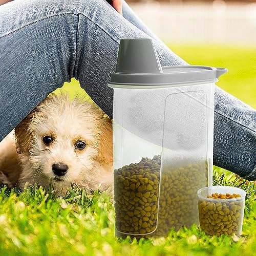 Kerhouze 2 contenitori ermetici per cibo per gatti, con misurino, versatore per cani, gatti, uccelli, 18,8 x 9,2 x 30 cm, 2 x 2,3 l (grigio)