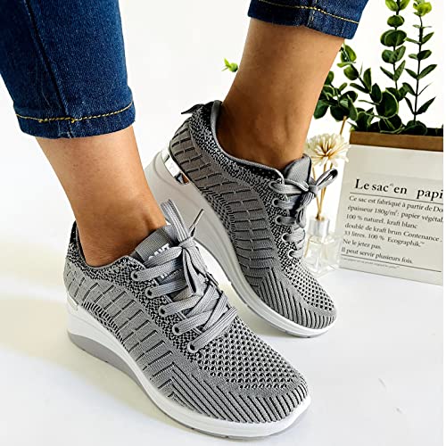 Kerland Scarpe da Ginnastica con Zeppa per Donna, Scarpe da Corsa con Lacci E Scarpe da Corsa da Passeggio Leggere, Scarpe da Tennis Casual con Aumento Dell'altezza, Grigio, 36 EU