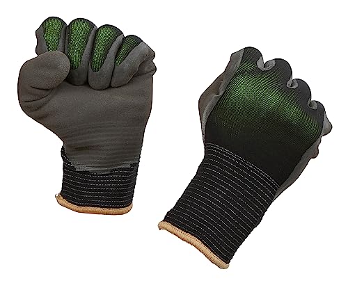 Pregiato rivestimento in schiuma di lattice, apertura sul dorso e sulla parte superiore delle dita, pollici completamente protetti, palmo in "MicroFinish" (la struttura della superficie è simile a ventose), consente perciò un'ottima presa anche in condizioni asciutte o umide, lavato, quindi protezione da allergie al lattice, Campi d'impiego: Lavori d'inverno all'aperto, in cui è necessaria la sensibilità sulla punta delle dita