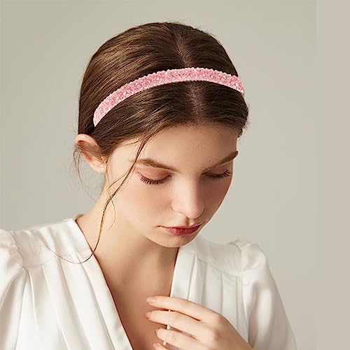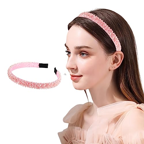 KERTFGOKU Fasce per Capelli Con Strass,Fascia Larga per Capelli,Con Strass,Strass e Cristalli,per Ragazze e Donne,per Compleanni,Feste,Vacanze(rosa)