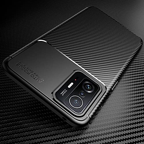 KERUN Fibra di Carbonio Cover per Xiaomi Mi 11T/11T PRO 5G e 2 Vetro Temperato, Custodia Protezione in Morbida Silicone TPU Anti-Graffio e Antiurto Flessibile Protettiva Case. Nero