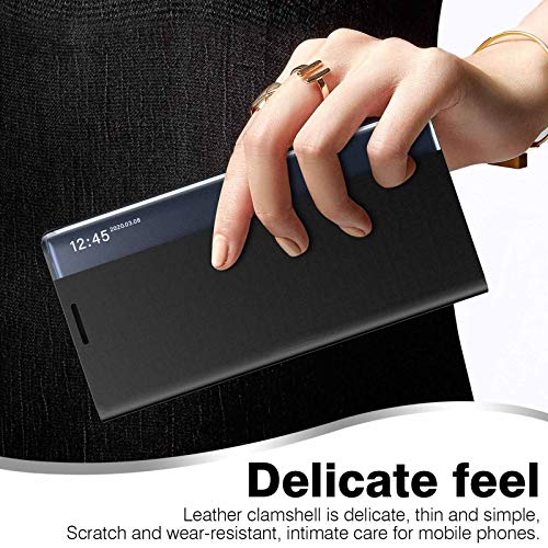 KERUN Specchio Debole Per Samsung Galaxy A02s EU, Windows Smart View Filp Cover Con Cavalletto Pieghevole, Guscio In Pelle Premium - Nero
