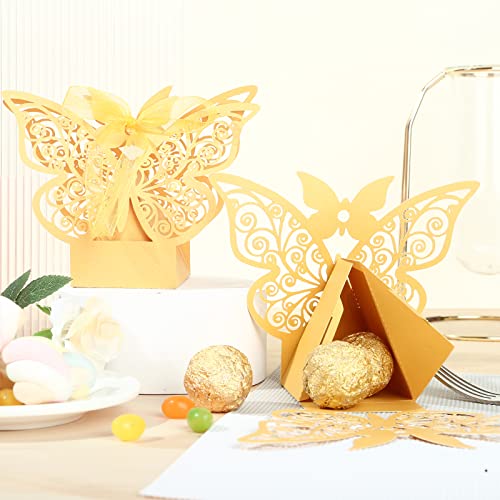 Kesote 50 Scatoline Portaconfetti Comunione Scatolina Farfalla Segnaposto Bomboniere di Matrimonio Scatoline Confetti per Matrimonio Battesimo Compleanno, Dorato