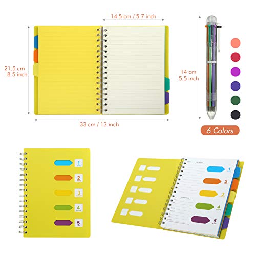 Kesote A5 Taccuino ad Anelli con Etichette di 5 Colori e Una Penna a Sfera di 6 Colori A5 Quaderno per Scuola, Ufiicio o Casa, 120 Fogli, Giallo