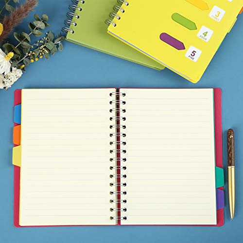 Dimensione: il quaderno include 240 pagine (120 fogli) a righe che sono spesse e di alta qualità, avendo una resistente copertina di plastica e 5 divisori laterali colorati.
