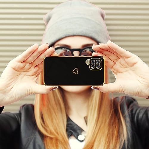 【Design galvanico glitterato】: cover per Samsung Galaxy A12 / M12 che utilizza la tecnologia galvanica, cover posteriore con motivo a cuore d'amore, un bellissimo bordo placcato in oro circonda con grazia i bordi del paraurti e i bordi della fotocamera, custodie per cellulari Samsung Galaxy A12 / M12 che brillano alla luce o alla luce del sole, aspetto nobile e bello. Fai risaltare il tuo telefono.