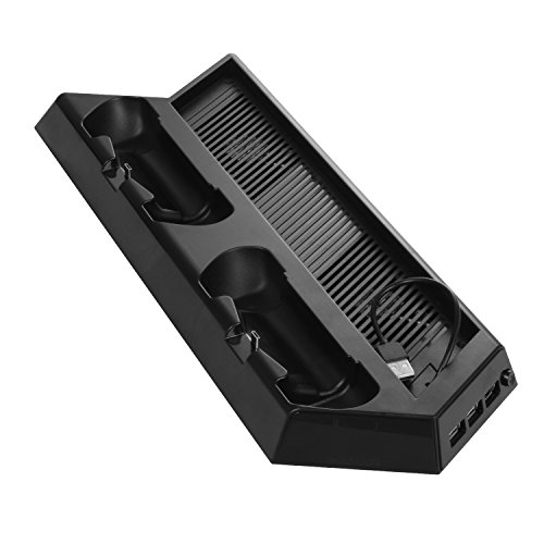 Tutto-In-Uno: Multifunzione come supporto verticale console PS4 + zona raffreddamento console, stazione di ricarica per controller dualshock + 3 USB HUB.
