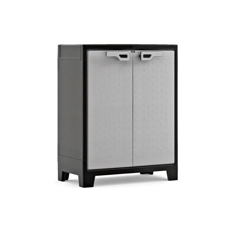 Armadietto da esterno impermeabile in plastica titan low cabinet kis titan low, armadietto in plastica completamente impermeabile, ideale per ottimizzare gli spazi nell'arredo giardino ed esterni, grazie all'elegante design made in italy. l'armadietto da esterno titan low è resistente all'acqua e può essere posizionato esternamente sotto il portico di casa anche il prossimità di zone arieggiate poichè è dotato di cerniere in metallo resistenti, capaci di evitare l'involontaria apertura delle ante dovute al forte vento. l'armadietto può essere combinato con gli altri armadi portascope e armadi in plastica della linea titan per completare con stile l'arredo giardino, balconi e terrazze. armadietto in plastica 2 ante, 2 ripiani regolabili cm l80 x p44 x h100