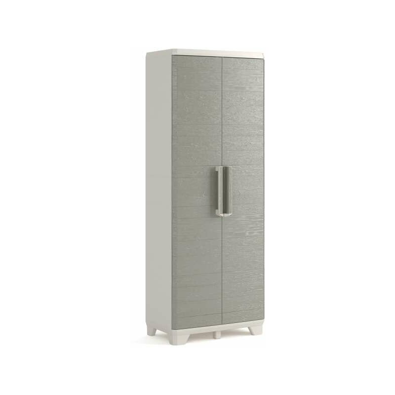 Mobile portascope in resina a 2 ante. Armadio dal design moderno 100% italiano. Caratteristiche: Colore: beige e wood grey Con 3 ripiani regolabili, ciascuno con portata di 10 kg Con cerniere antivento Piedini regolabili e alzati Predisposto ad essere chiuso con lucchetto Dimensioni: 68x39x182 h Funzione: Mobile portascope comodo e pratico Ottimo per chi cerca un mobile che ricordi il legno, ma dalla grande durabilità e di facile manutenzione Caratteristiche del prodotto Chiusura Predisposizione per lucchetto (non incluso) Colore Grigio Dettagli Texture in finto legno Marca Keter Materiale Resina Mobile Da assemblare Numero di ripiani 3 Ante battenti 2 Dimiensioni prodotto Larghezza: 0.68 m. Altezza: 1.82 m. Profondit: 39.0 cm. Peso: 13.16 Kg. Dimensioni Imballo Larghezza: 0.0 cm.
