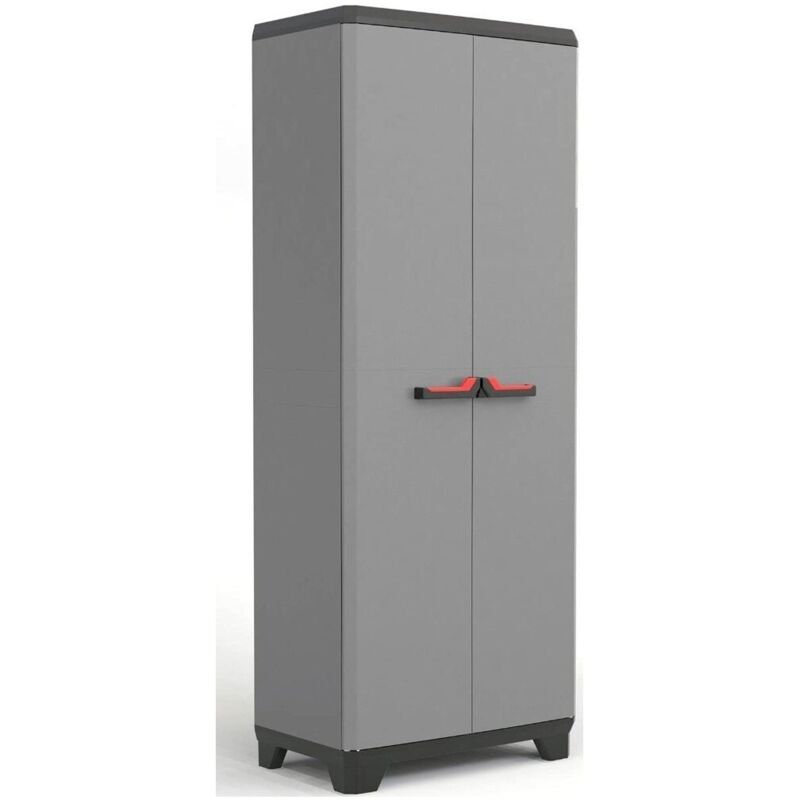 Armadio alto portascope a doppia anta in resina è spazioso ed è una ottima soluzione per organizzare il tuo terrazzo, il tuo giardino e il tuo patio. Non scolorisce perché resistente agli agenti atmosferici. Dotato di 3 ripiani regolabili e un vano portascope per garantirti un'organizzazione personale e predisposizione per lucchetto (lucchetto non incluso) per una maggiore sicurezza. Prodotto con materiali riciclabili, richiede poca manutenzione ed è facile da pulire. Caratteristiche Tecniche: Dimensioni (LxPxH) 68x39x173 cm Colore: grigio Lucchettabile (lucchetto non incluso) Dimensione confezione (LxPxH) 84x42x27 cm - Peso: 12 kg Tutti i prodotti all'interno dell'armadio presenti in foto non sono in vendita. Abbinabile al modello tutto piani della stessa linea.