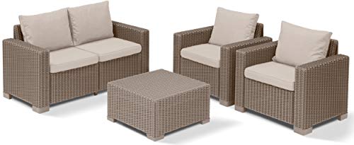Keter California Set 2 Poltrone in Rattan, Set di 2 Divanetti con Cuscino Incluso Color Cappuccino