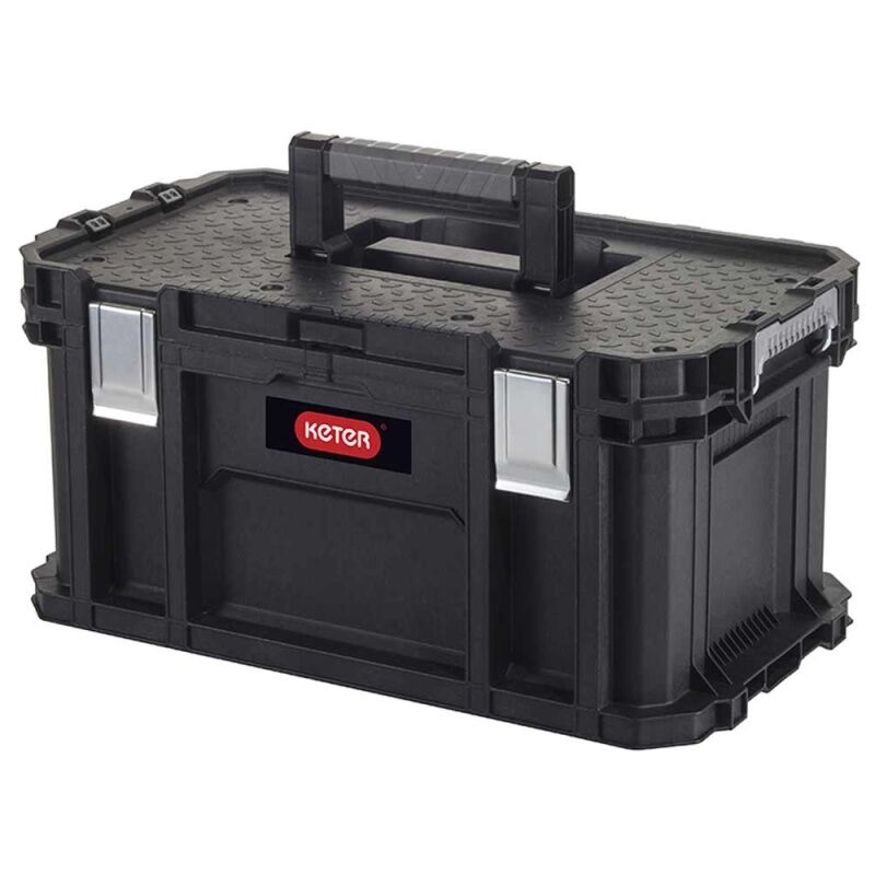 Cassetta porta attrezzi connect tool box Keter 239995 La cassetta porta attrezzi Keter 239995 Connect Tool Box è un prodotto di qualità, ideale per organizzare e trasportare gli utensili più utilizzati.Realizzata in polipropilene resistente agli urti e alla corrosione, che la rendono adatta per un utilizzo prolungato in ambienti esterni e interni. Dotata di cerniere in metallo e di predisposizione per il lucchetto che consentono di mantenere gli attrezzi al sicuro durante il trasporto. Le grandi dimensioni di questa cassetta porta attrezzi garantiscono il rimessaggio anche di oggetti più grandi come trapani, martelli e seghe. La Keter 239995 Connect Tool Box rientra nella gamma modulare connect compatibile quindi con il trolley porta utensili Keter connect rolling system e puo' essere connessa ad altre cassette porta attrezzi della medesima gamma. Inoltre, è dotata di una maniglia ergonomica in gomma per garantire un comodo trasporto e di un pratico vano superiore per riporre oggetti