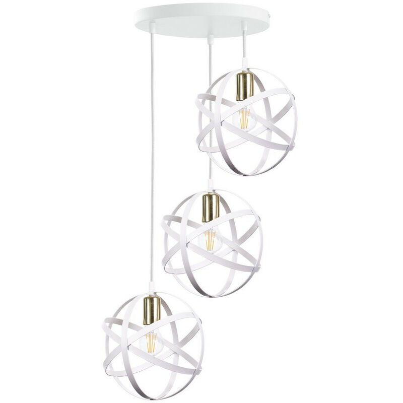 Keter Lighting - 1109 Pola Cluster Lampada da soffitto a sospensione bianca, oro, 35 cm, 3x E27 | Finitura: bianco, oro | Altezza: 120 cm | Lunghezza: 35 cm | Larghezza: 35 cm | Tipo di lampada: E27 | N. di lampade: 3 | Lampadina inclusa: no | Dimmerabile: Sì - Sono necessarie lampadine dimmerabili | Potenza (max): 60 W