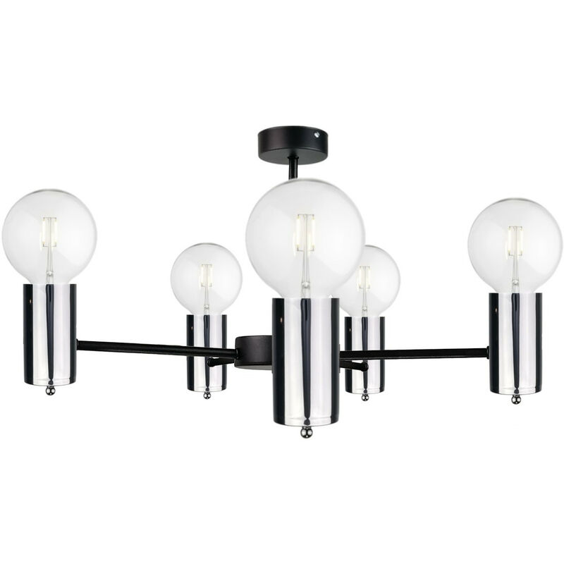 Keter Lighting - 1712 Arde Multi Arm Lampada da soffitto semi-incasso nero, argento, 60 cm, 5x E27 | Finitura: nero, argento | Altezza: 37 cm | Lunghezza: 60 cm | Larghezza: 60 cm | Tipo di lampada: E27 | N. di lampade: 5 | Lampadina inclusa: no | Dimmerabile: Sì - Sono necessarie lampadine dimmerabili | Potenza (max): 60 W