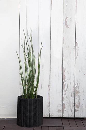 Keter - Set di 3 vasi rotondi per interno o esterno in stile rattan, colore: antracite