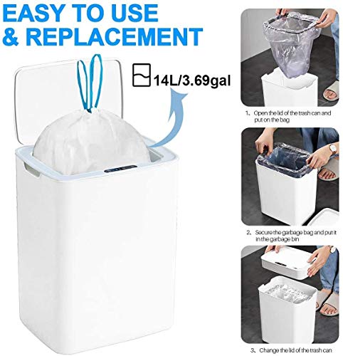 Kethvoz Pattumiera automatica da 14 l, con sensore di movimento, Smart Rubbish Box senza contatto per Kitchen Home Office Bedroom, bianco