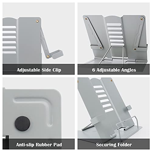 KETIEE Leggio da Tavolo per Libri, Supporto Regolabile in Metallo per Ricettario o Libri, Lettura per Libri da Cucina a Pieghevole Porta Libri da Scrivania per Libri, cuochi, Ricette, iPad, Grigio