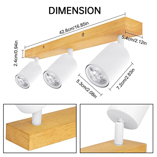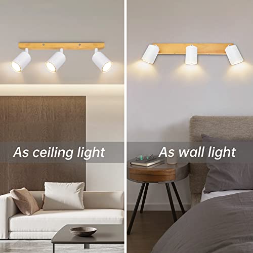 Ketom Lampada Faretti da Soffitto Orientabili Bianco, GU10 Faretti Soffitto con 3 Faretti, Legna Lampada Faretti, Applique Faretti Soffitto Moderno per Camera letto Salotto Soggiorno Cucina Corridoio