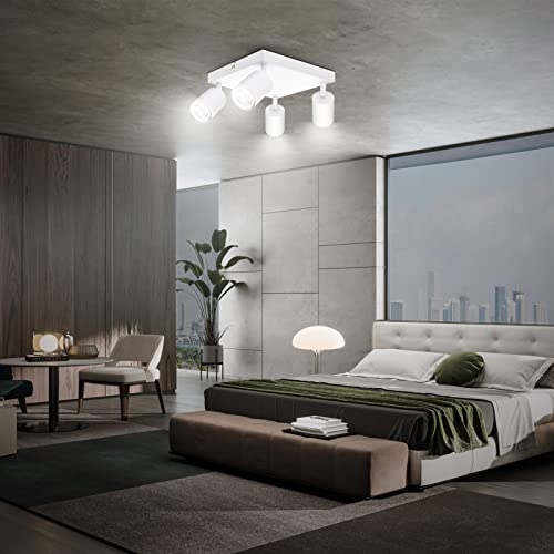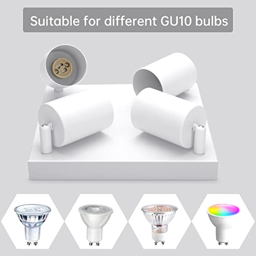 Ketom Lampada Faretti da Soffitto Orientabili, GU10 Faretti LED da Soffitto Bianco, Quadrato Moderna Plafoniera LED Faretti 4 Luce, Faretto da Parete Interno per Cameretta, Cucina, Senza Lampadina