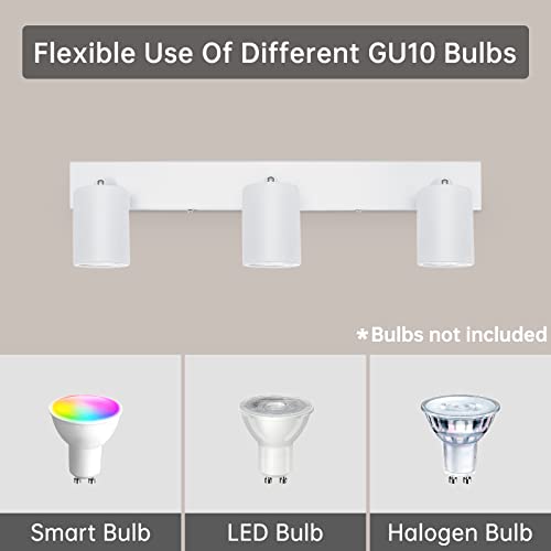 Ketom Lampada Faretti da Soffitto Orientabili, GU10 Faretti LED da Soffitto Bianco, Moderna Plafoniera LED Faretti 3 Luce, Faretto da Parete Interno per Barra, Cameretta, Cucina, Senza Lampadina