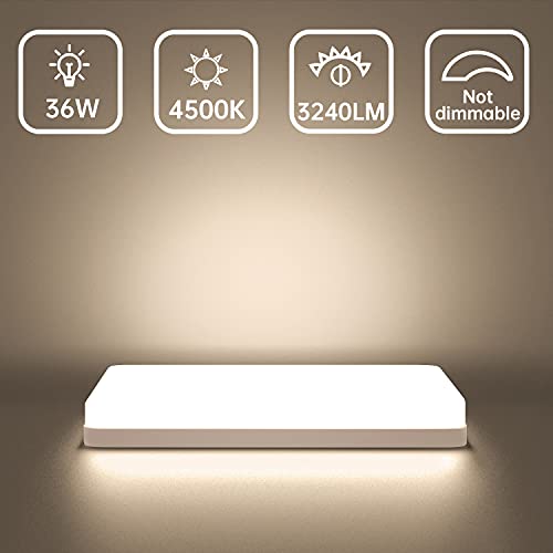 Ketom Plafoniera LED Soffitto Quadrata 36W Moderna Plafoniere da Soffitto Bianco Neutro 4500K Ultra Magro Pannello LED 3240LM Lampada da Soffitto per Corridoio, Bagno, Camera da letto, 23cm