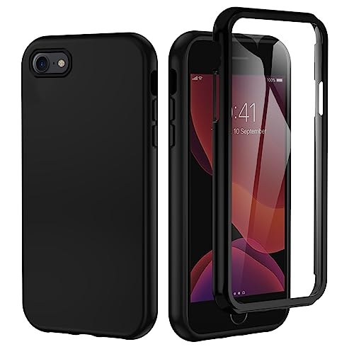 KetteTech Cover in Silicone per iPhone SE/iPhone 7/iPhone 8, Custodia Antiurto 360 Gradi con Pellicola Protettiva Antigraffio Integrata (Nero)